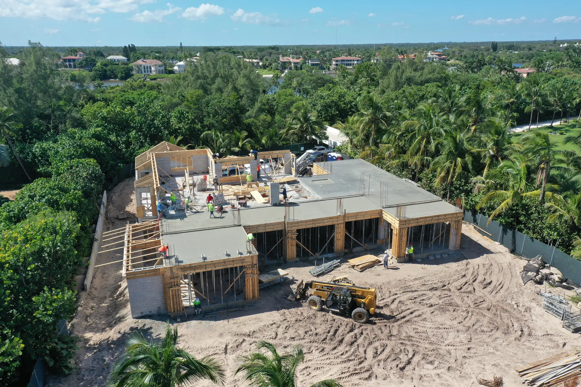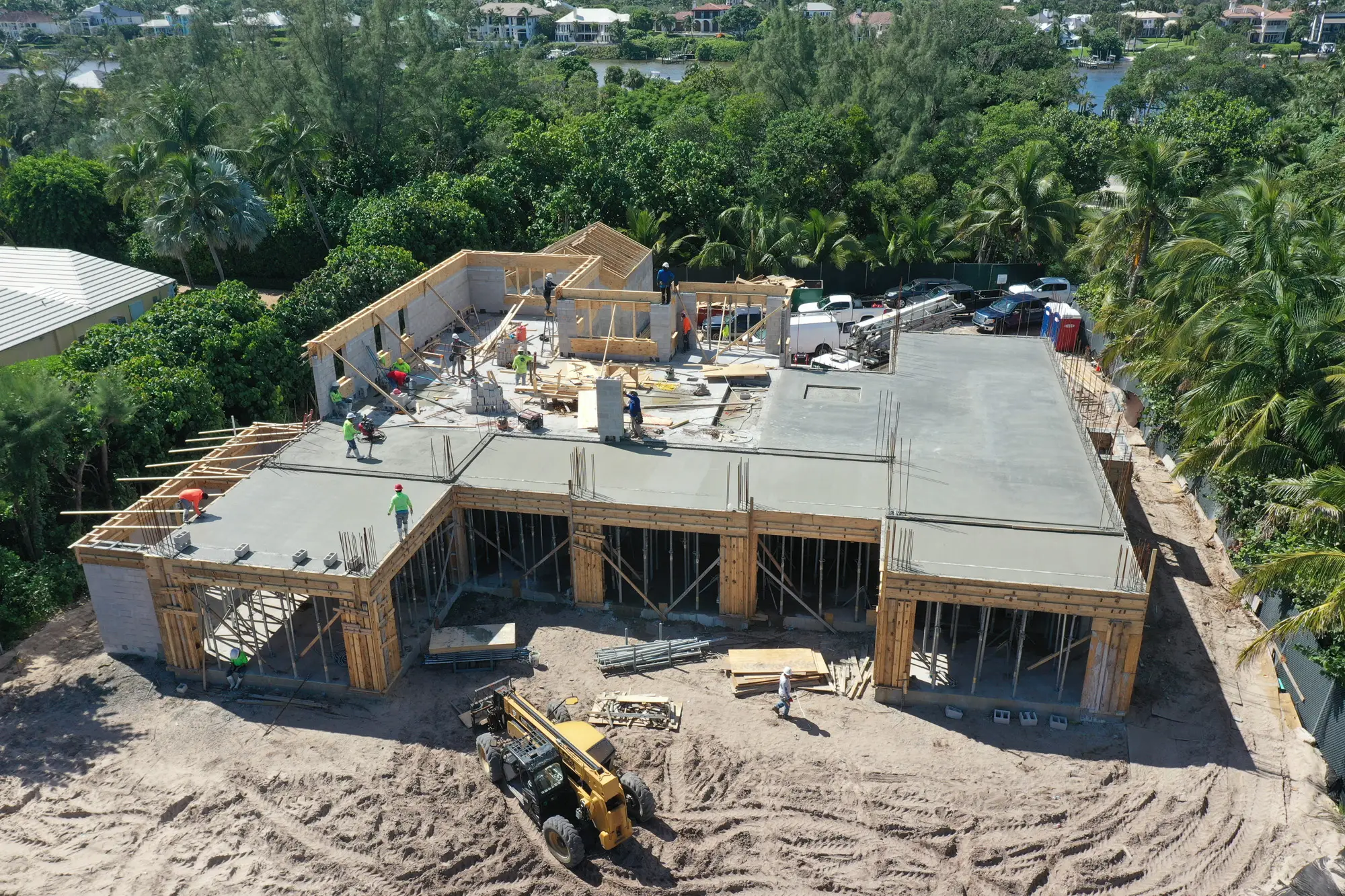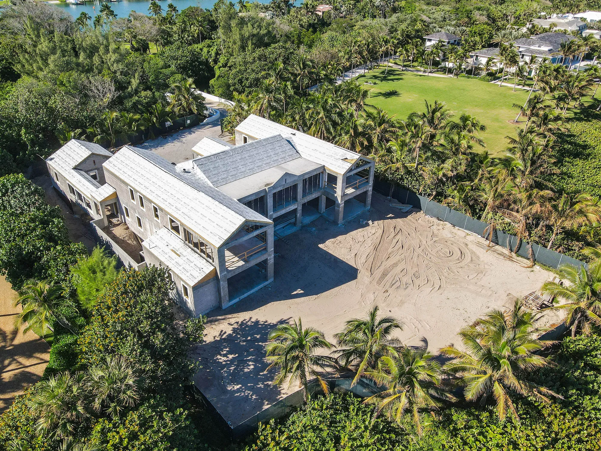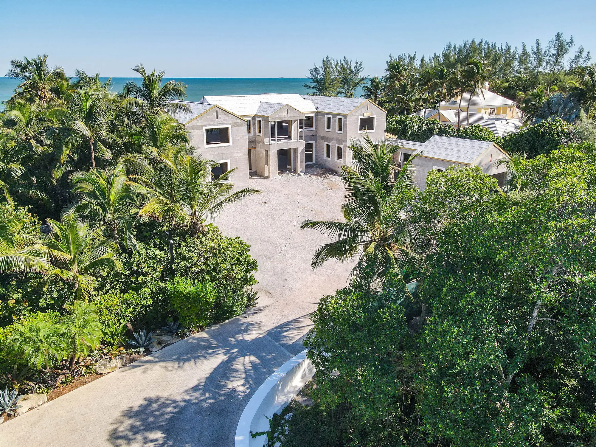 This remarkable estate represents a pinnacle of oceanfront construction complexity, requiring specialized waterproofing and structural systems to create multiple below-grade levels in the challenging coastal environment. The aerial construction documentation reveals the extensive rebar work and precision concrete placement required for the multi-level basement construction, including the innovative two-level parking system and basement gym facilities. The combination of Jupiter Island's coveted direct ocean access, substantial acreage, and the technical achievement of multi-level basement construction creates a residence that exemplifies luxury oceanfront living while showcasing Shellco's expertise in executing the most complex residential projects in Florida's premier coastal locations.