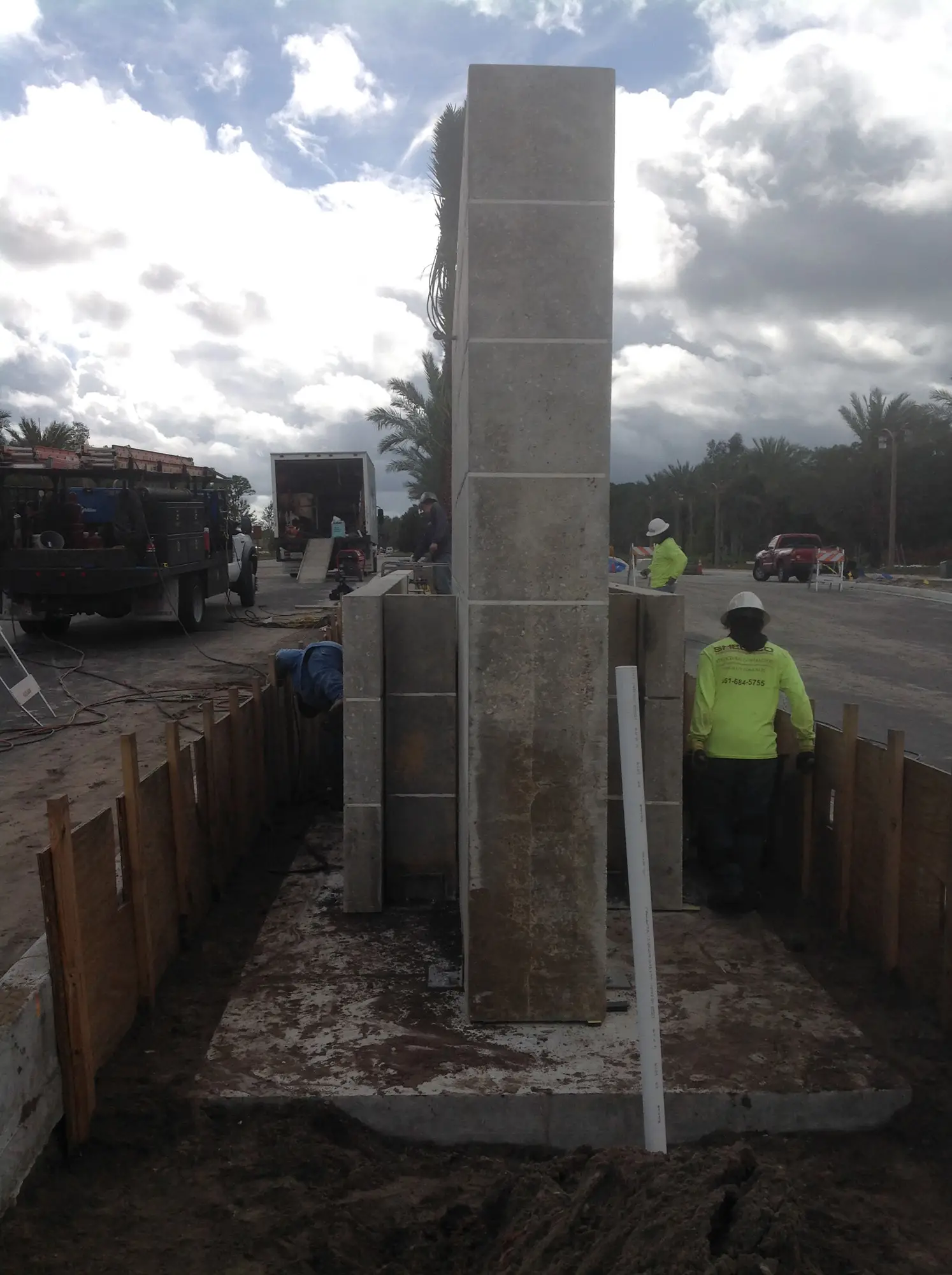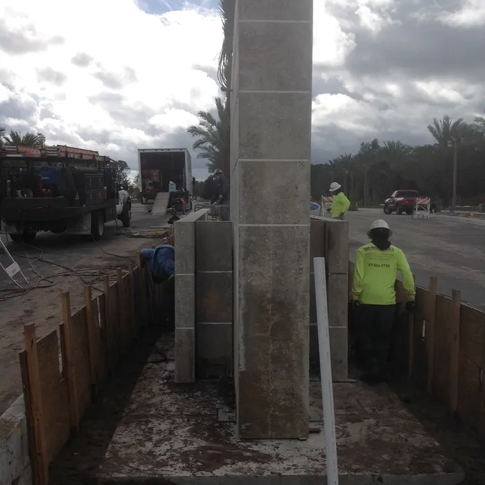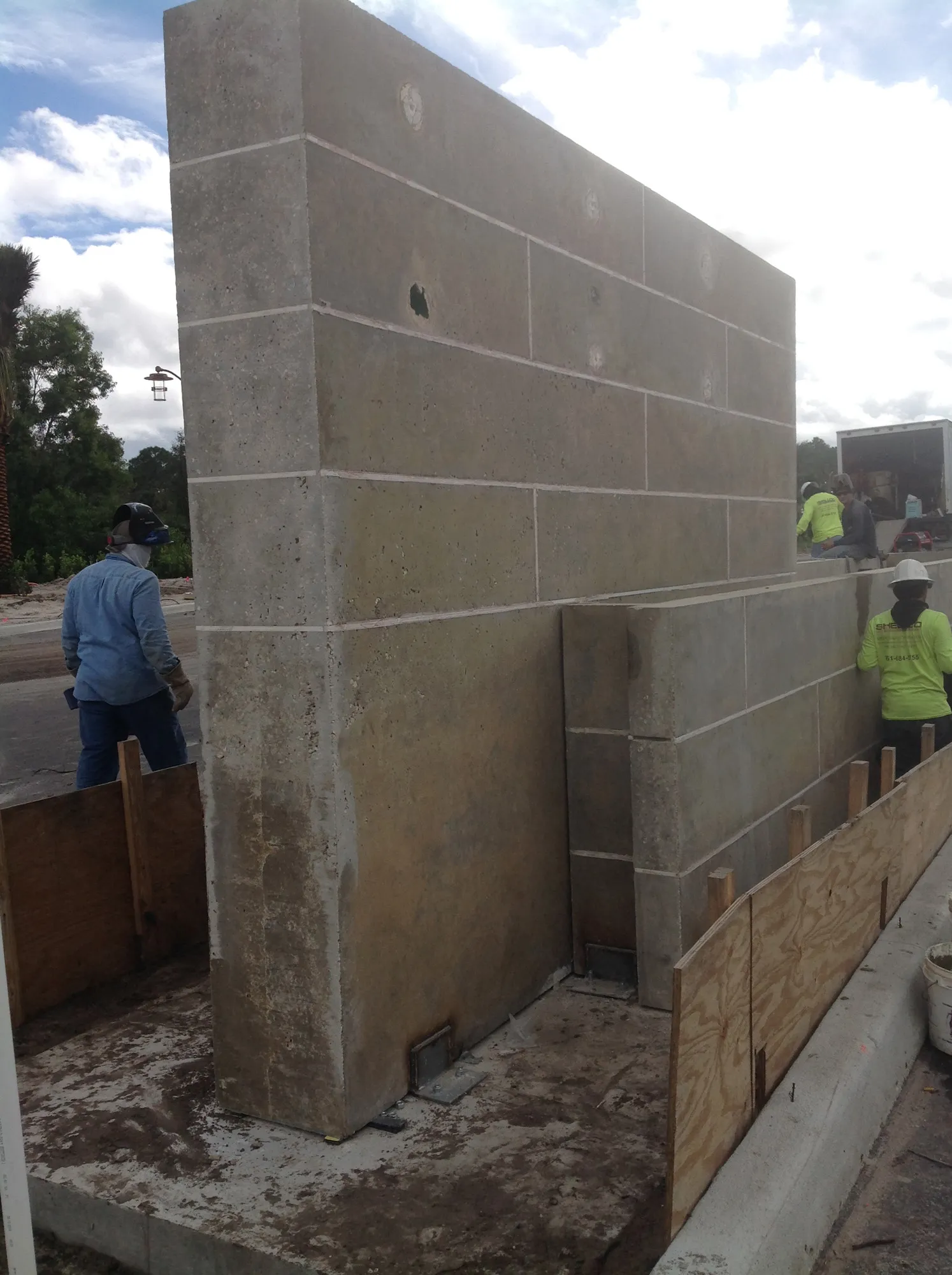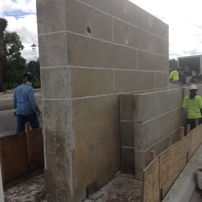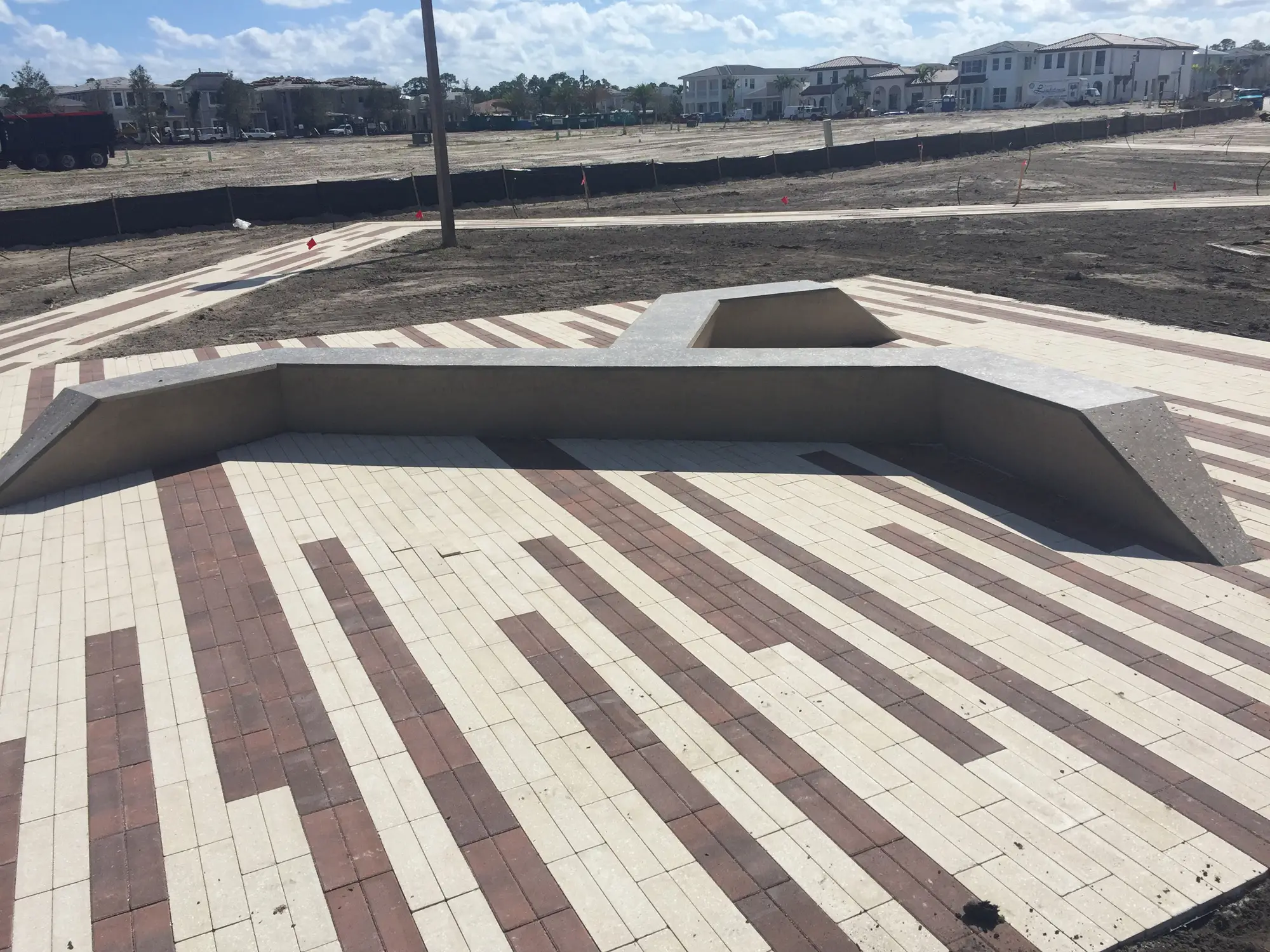 Shellco Construction delivered an extensive decorative concrete package for Alton, featuring multiple style benches, signage systems, and a cantilevering bus shelter crafted from Mesa Beige exposed aggregate concrete with specialized polishing and sandblasting techniques. The project showcased advanced concrete finishing methods, including hand-seeded tabby coquina shell aggregate that was later polished and sandblasted to achieve the desired exposed aggregate effect throughout the development.