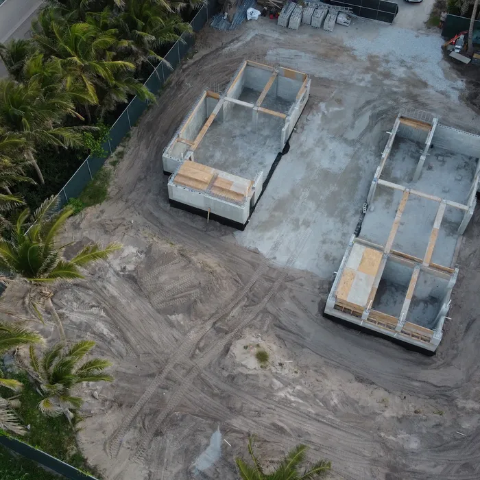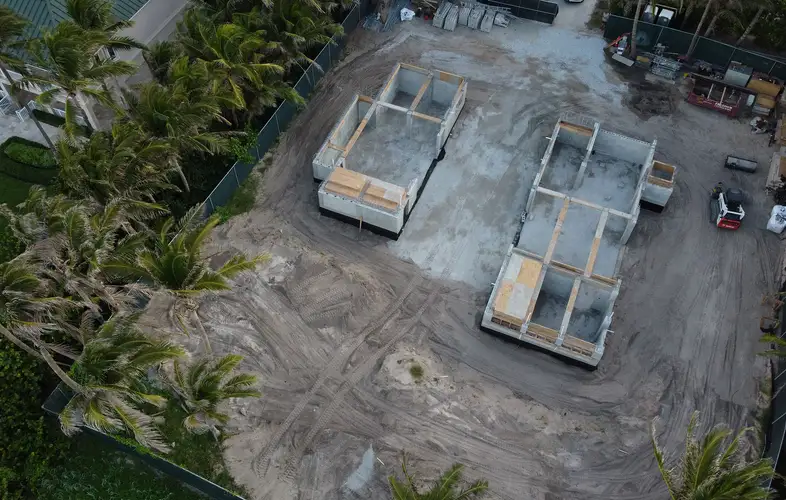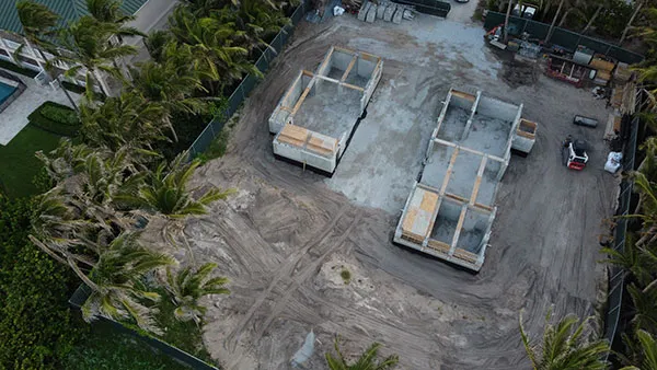 The unique basement motor court represents a sophisticated engineering achievement, requiring precise auger pile foundation work and waterproofing systems to create below-grade parking and utility spaces in a coastal environment. The aerial construction documentation reveals the complexity of the multi-level concrete work and the precision required to execute the cast-in-place floor systems while maintaining structural integrity in the challenging oceanfront conditions. The combination of Jupiter Island's coveted location, innovative basement motor court design, and advanced construction techniques creates a residence that exemplifies luxury coastal living while showcasing Shellco's expertise in executing complex residential projects in Florida's most exclusive oceanfront markets.