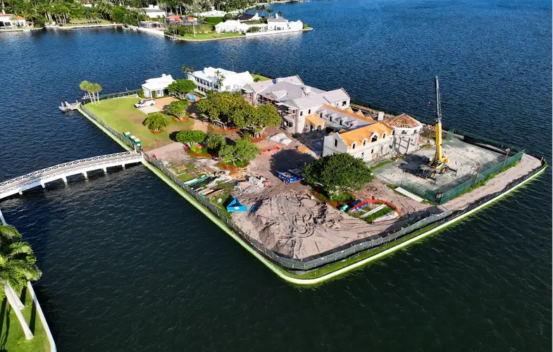 This exclusive 2.3-acre island property features the area's only private lighted tennis courts, two swimming pools, including a 98-foot lakefront infinity pool, 11 bedrooms, two full kitchens, and lake views on all sides. Construction required a specialized auger pile spread footing foundation engineered for island conditions, with all materials transported by barge due to the property's unique bridge and boat-only access. The project showcased Shellco's expertise in complex waterfront construction, seamlessly integrating modern luxury amenities with historic architecture while meeting hurricane-zone requirements.